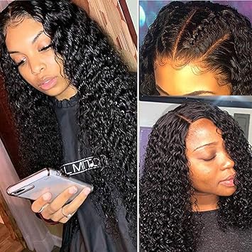 Amazon Com Short Bob Lace Front Human Hair Wigs With Baby Hair 150 Density For Black Women Pre Plucked Hairline Brazilian Virgin Full Lace Human Hair Wigs Loose Curly Hair Natural Color from images-na.ssl-images-amazon.com